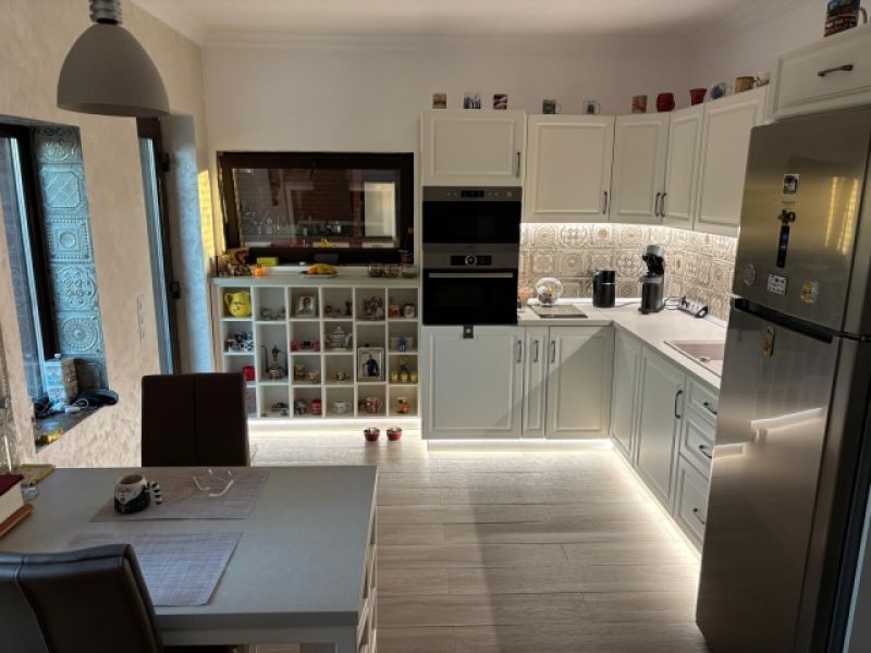 Dotari casa:centrala pe gaz BAXI ,incalzire pardoseala parter , geamuri tripan fourseason,mocheta ,parchet Tarkett ,gresie,faianta , usi Porta Doors ,3 unitati de AC de 12btu , termoizolatie exterioara 20 cm parter respectiv 40 cm etaj , pod izolat termic ( acoperiș si tavan etaj ).Mobila este achizionata de la Mobexpert si personalizata, electrocasnice Hotpoint, Bosch .