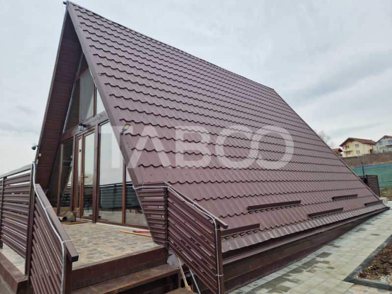 Casa individuala de tip A-frame, de vanzare, cu priveliste panoramica peste dealurile din Daia Noua, la doar 5 km de intrarea in orasul Sibiu.